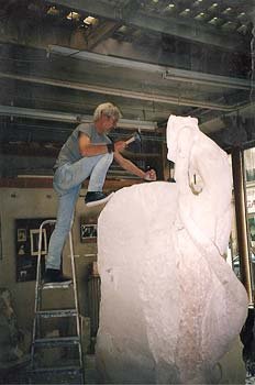 Pour ce faire, il a commandé à la carrière un bloc de 230 cm x 98 cm x 98 cm : ces 4 tonnes de pierre ont été livrées le 26 octobre 1999 à son ancien atelier rue Jacques Cœur, à Paris.